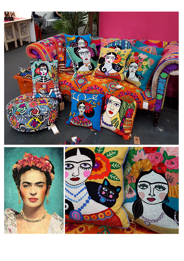 It didn’t take long before Frida Kahlo came on trend for the retail market. As seen at NEC, Spring Fair, Birmingham in the form of everything from Stationery to the Outdoor Picnic range. My favourite items at Top Drawer were these colourful embroidery Bohemian cushions from creative fairtrade designers by Ian Snow Ltd. http://www.iansnow.com