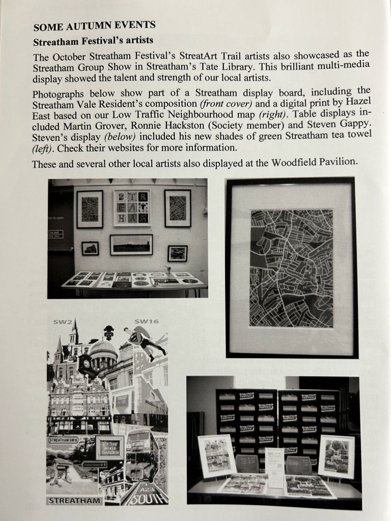 I am pleased to see The Streatham Society have mentioned me in a newsletter – Spring 2024